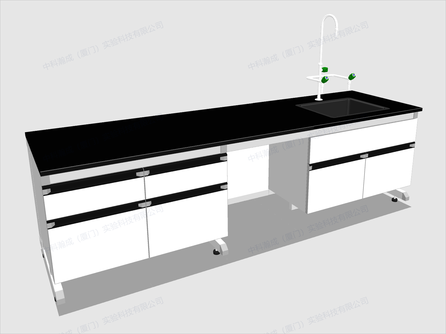 12.7mm厚实芯理化板台面,耐强酸强碱耐腐蚀,耐高温。外缘挂边加厚至25.4mm厚,双向弧形倒角,外观手感俱佳。
